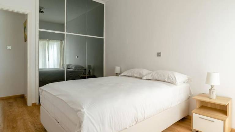 Die Ferienwohnung besteht aus zwei Schlafzimmern, einer voll ausgestatteten Küche mit Kühlschrank und Geschirrspüler, einem Flachbild-TV sowie einem Sitzbereich. Zwei Badezimmer sind mit einer Dusche ausgestattet. Handtücher und Bettwäsche werden bereitgestellt.