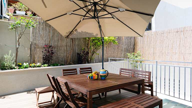 Das Elegant Duplex with XL Patio by FeelHome bietet eine ideale Lage im Herzen von Tel Aviv und ist die perfekte Unterkunft für Ihren Aufenthalt. Mit einem wunderschönen Gartenblick und einer geräumigen Terrasse können Sie die Atmosphäre der Stadt in vollen Zügen genießen. Das klimatisierte Apartment verfügt über 4 Schlafzimmer, ein gemütliches Wohnzimmer und eine voll ausgestattete Küche. Kostenloses WLAN ist verfügbar und Handtücher sowie Bettwäsche werden gestellt. Die beliebten Strände Aviv, Banana und Jerusalem sind in der Nähe und der Flughafen Ben Gurion ist nur 14 km entfernt.