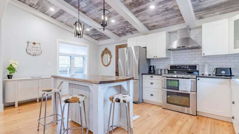 Erleben Sie einen eleganten Aufenthalt im Elegant Elora Home with Stylish Décor in Elora. Das Ferienhaus verfügt über einen Whirlpool und bietet einen komfortablen Rückzugsort. Genießen Sie die ruhige Umgebung und den Garten, sowie kostenfreie Parkplätze. Das klimatisierte Ferienhaus ist mit 2 Schlafzimmern, einem Flachbild-TV und einer gut ausgestatteten Küche ausgestattet. Handtücher und Bettwäsche werden gestellt. Die Unterkunft liegt in der Nähe von Sehenswürdigkeiten wie dem Alumni-Stadion und dem Einkaufszentrum Centre In The Square. Der internationale Flughafen Waterloo ist ebenfalls gut erreichbar.