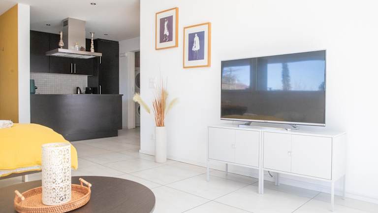 Die Ferienwohnung verfügt über 1 Schlafzimmer, ein Wohnzimmer sowie ein Badezimmer mit Dusche. Zur Ausstattung gehören ein Flachbild-TV, eine gut ausgestattete Küche mit Kühlschrank und Geschirrspüler. Handtücher und Bettwäsche werden bereitgestellt.