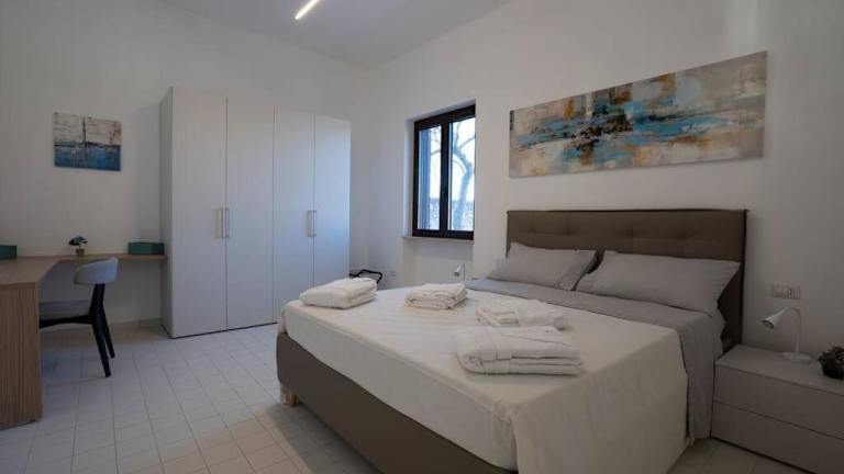 Elegante Villa tra Mare e Storia bietet Übernachtungsmöglichkeiten mit einer Veranda oder einem Patio sowie kostenlosem WLAN. Die Villa ist klimatisiert und umfasst zwei separate Schlafzimmer, eine voll ausgestattete Küchenzeile mit Kühlschrank und Ofen sowie ein Badezimmer. Handtücher und Bettwäsche werden bereitgestellt.