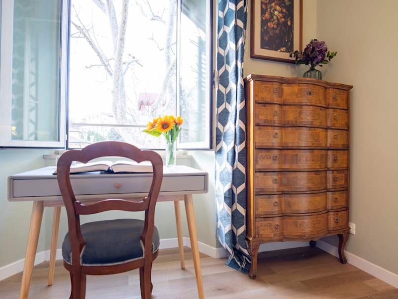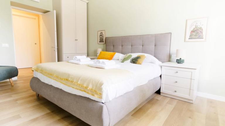 Die Ferienwohnung umfasst drei Schlafzimmer, ein Wohnzimmer und eine voll ausgestattete Küche mit Kühlschrank und Kaffeemaschine. Zudem gibt es zwei Badezimmer, die mit einem Bidet und einer Dusche ausgestattet sind. Handtücher und Bettwäsche werden bereitgestellt.