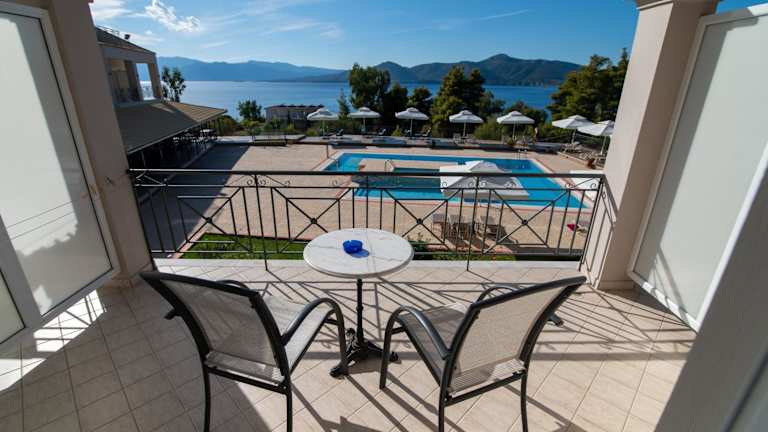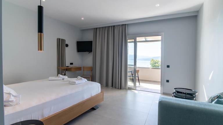 Die klimatisierten Zimmer im Elektra Hotel bieten allen Komfort, den Sie für einen angenehmen Aufenthalt benötigen. Jedes Zimmer verfügt über kostenfreies WLAN, einen Balkon mit Blick auf das Ionische Meer und die Berge sowie einen Sitzbereich mit Sat-TV und DVD-Player. Ein Kühlschrank und ein Haartrockner sind ebenfalls vorhanden.