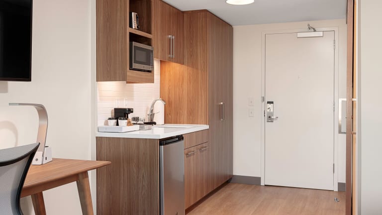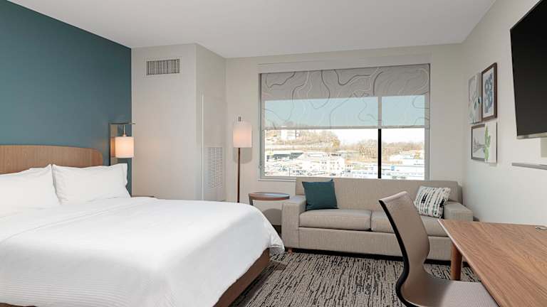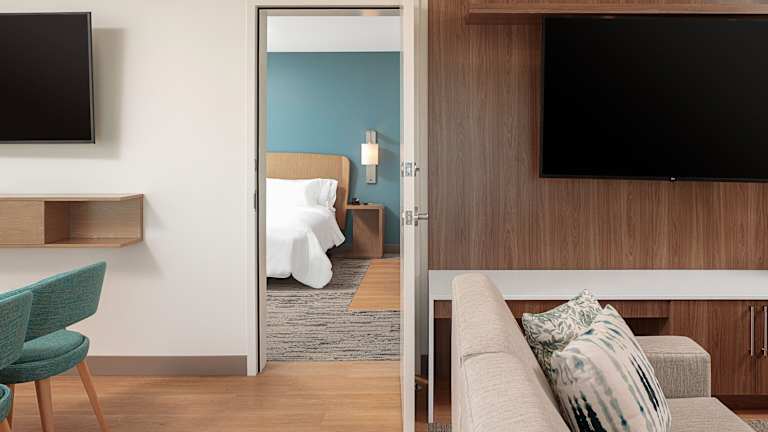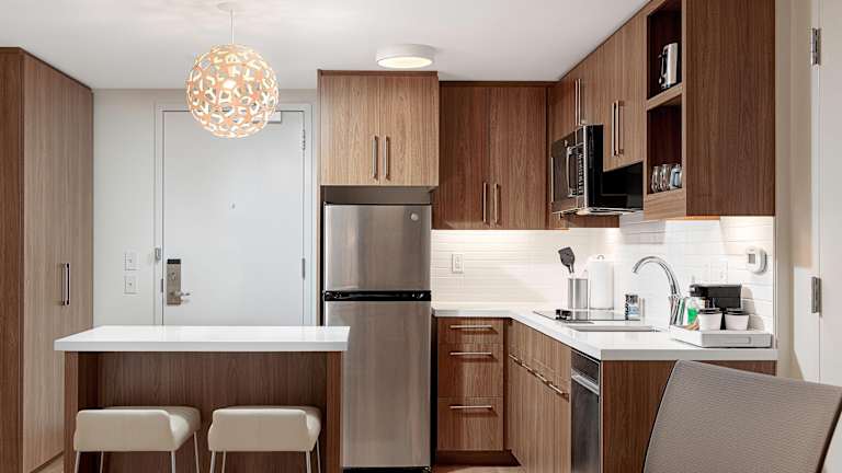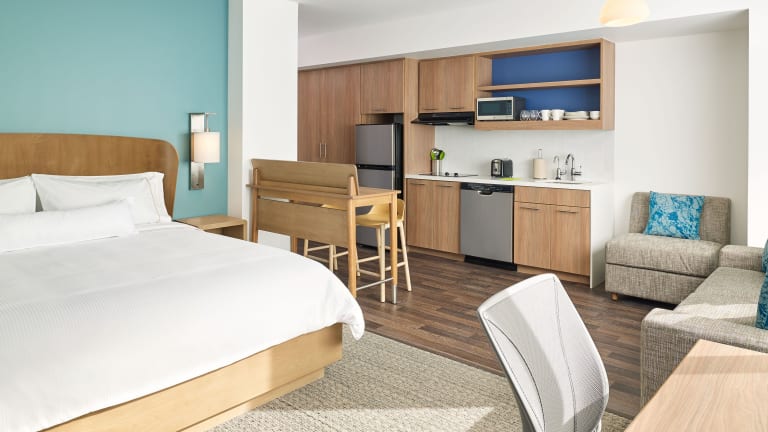 Die Zimmer sind mit einem Queensizebett und einem Schlafsofa ausgestattet und verfügen über Annehmlichkeiten wie Klimaanlage, Heizung, Safe, Schreibtisch, Kühlschrank, Mikrowelle, Tee-/Kaffeekocher, TV und freies WLAN. Die Badezimmer sind mit einer Dusche, Haartrockner und Kosmetikartikeln ausgestattet. Barrierefreie Zimmer sind ebenfalls verfügbar.