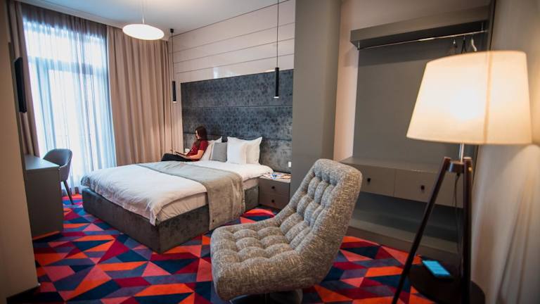 Die Zimmer sind mit Klimaanlage, einem Flachbild-TV mit Kabelkanälen, einer Minibar, einem Wasserkocher sowie einer Dusche ausgestattet. Jedes Zimmer verfügt über ein eigenes Badezimmer mit einem Haartrockner. Zudem sind in einigen Zimmern ein Balkon vorhanden, während andere durch einen Stadtblick bestechen. Allen Zimmern sind Bettwäsche und Handtücher beigefügt.