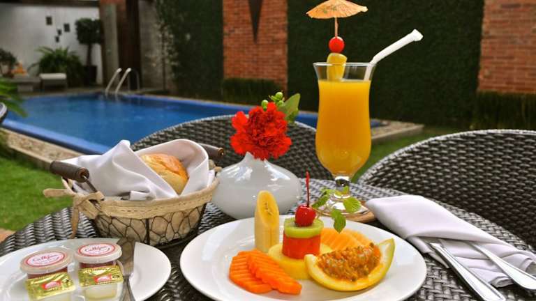 Das Elements Hotel Boutique in Managua ist der perfekte Ort, um dem geschäftigen Treiben der Stadt zu entfliehen und gleichzeitig alle Annehmlichkeiten eines modernen Boutique-Hotels zu genießen. Mit einem Außenpool, einem Fitnesscenter und gepflegten Gärten bietet das Hotel eine Vielzahl von Möglichkeiten zur Entspannung und Erholung. Das inkludierte À-la-carte-Frühstück sorgt für einen gelungenen Start in den Tag. Die Zimmer sind hell und elegant eingerichtet und bieten WLAN sowie Zubehör für die Zubereitung von Gourmetkaffee. In der Loungebar können Sie Getränke und Snacks genießen und in der Umgebung gibt es eine gute Auswahl an gastronomischen Einrichtungen. Die Unterkunft steht Ihnen auch bei der Organisation von Touren und Ausflügen zur Seite. Supermärkte, Banken und das historische Zentrum sind mit dem Auto schnell erreichbar und der internationale Flughafen Managua ist ebenfalls gut erreichbar.