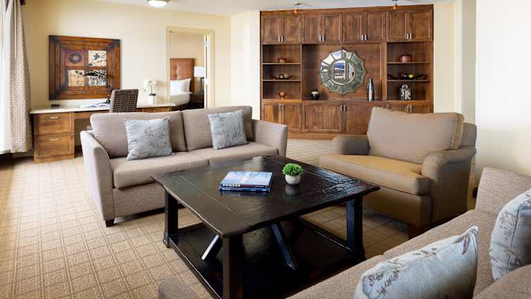 Die Zimmer verfügen über eine Klimaanlage, Heizung sowie Ventilatoren und bieten einen Balkon oder eine Terrasse mit Bergblick. Zur Ausstattung gehören ein Doppelbett, ein Sofabett, Safe, Minibar, Schreibtisch, Minikühlschrank, Mikrowelle und Kaffee-/Teekocher. Ein Bügelset steht ebenfalls zur Verfügung. Die Badezimmer sind mit Dusche und Badewanne, Haartrockner sowie Kosmetikartikeln ausgestattet. Rollstuhlgerechte Zimmer und Familienzimmer sind verfügbar.