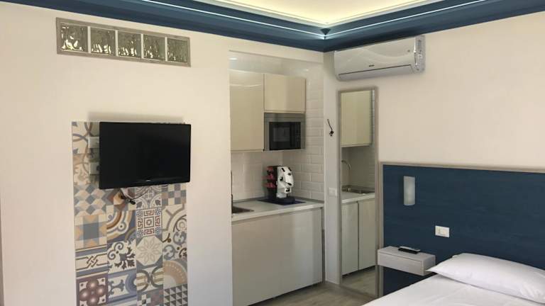Die klimatisierten Zimmer der Elisir Suite Rooms by Marino Tourist sind mit verschiedenen Annehmlichkeiten ausgestattet, darunter ein Schreibtisch, eine Kaffeemaschine, ein Kühlschrank, eine Mikrowelle, ein Safe und ein Flachbild-TV. Jedes Zimmer verfügt zudem über einen Balkon und ein eigenes Badezimmer mit einem Bidet. Alle Wohneinheiten bieten Zugang zu einem Kleiderschrank.