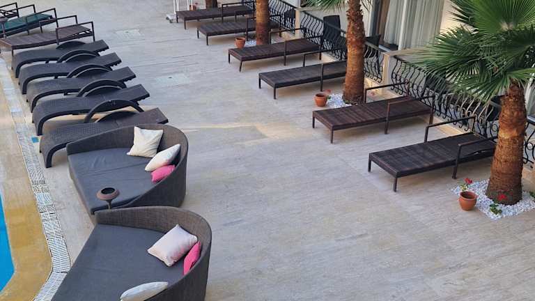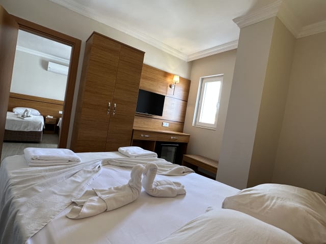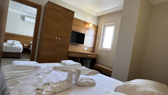 Das Beso Beach Hotel befindet sich in Camyuva, nur etwa 80 m vom Sandstrand entfernt. Das Stadtzentrum von Kemer liegt rund 6 km entfernt, während der nächstgelegene Flughafen, Antalya (AYT), ca. 60 km entfernt ist.