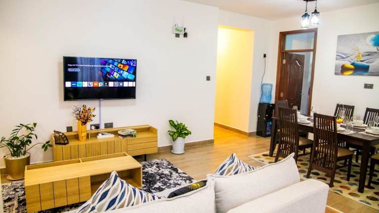 Elite Residence Near Villa Rosa Kempinski Westlands bietet eine komfortable Ferienwohnung mit einem Außenpool und rund um die Uhr besetzter Rezeption. Die Unterkunft ist mit einer voll ausgestatteten Küche ausgestattet und ermöglicht eine angenehme und flexible Aufenthaltsgestaltung. Es stehen kostenlose Parkmöglichkeiten und WLAN zur Verfügung. Die Unterkunft richtet sich an Gäste ab einem Mindestalter von 18 Jahren und nimmt keine Haustiere auf. Feierlichkeiten dieser Art sind nicht gestattet.