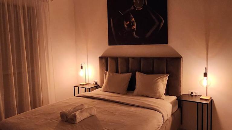 Die Ferienwohnung bietet ein Schlafzimmer, eine Küche mit Kühlschrank und Ofen sowie ein Badezimmer mit Dusche und kostenlosen Pflegeprodukten. Eine Waschmaschine ist ebenfalls vorhanden, und Handtücher sowie Bettwäsche werden bereitgestellt.