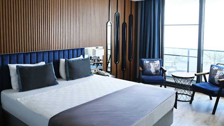 Die Zimmer sind ausgestattet mit Klimaanlage, Sitzbereich, Flachbild-TV mit Satellitenkanälen, einem Safe und eigenem Badezimmer mit Dusche und kostenlosen Pflegeprodukten. Einige Zimmer bieten Meerblick und sind mit einem Wasserkocher ausgestattet. Zur Einrichtung gehören Bettwäsche und Handtücher.