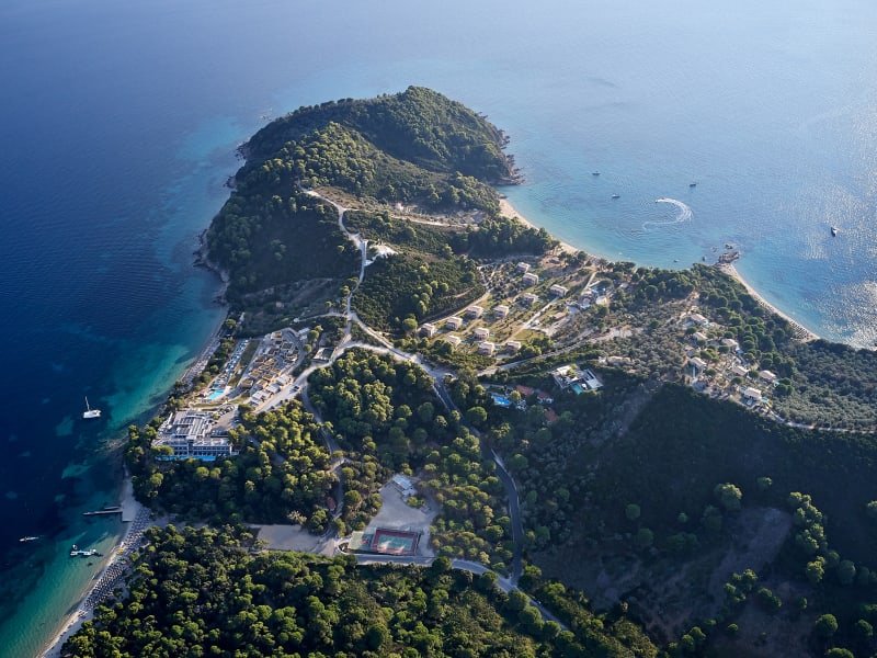 Das Elivi Skiathos erstreckt sich über 2,8 Hektar und ist harmonisch in die Natur integriert. Die Unterkunft besteht aus drei Wohnbereichen: dem Elivi Xenia Hotel, den Grace Suites und den Nest Villas & Suites. Die modern ausgestatteten Räumlichkeiten bieten eine luxuriöse Atmosphäre. Die Ästhetik der Anlage harmoniert mit der umgebenden Natur und sorgt für ein gehobenes Urlaubsangebot.