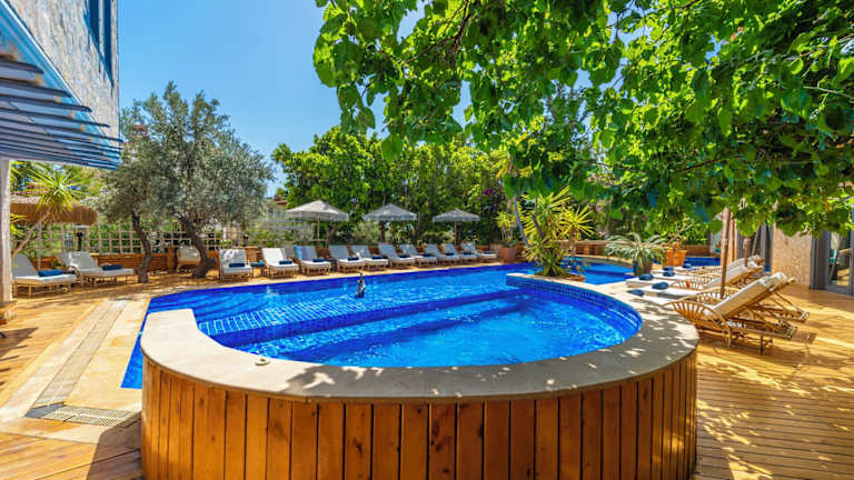 Das Elixir Hotel in Kalkan bietet eine wunderschöne Lage mit Blick auf das Mittelmeer und ist der ideale Ort für einen romantischen Aufenthalt. Das Hotel besticht nicht nur durch seine charmanten Wohneinheiten, sondern auch durch seine erstklassigen Einrichtungen wie das größte natürliche Türkische Bad der Stadt, einen Außenpool und kostenloses WLAN. Genießen Sie den Komfort der gemütlichen Zimmer mit Holzboden, eigenem Bad und Balkon. Das hoteleigene Restaurant verwöhnt Sie mit einer Auswahl an Speisen, Snacks und Getränken, darunter auch ein köstliches Frühstücksbuffet, das im Preis inbegriffen ist. Lassen Sie den Abend bei Grillgerichten ausklingen oder spielen Sie eine Runde Billard in der Sportbar des Hotels. Der Flughafen Dalaman ist 126 km entfernt und der Flughafen Antalya erreicht man nach 241 km. Gegen Aufpreis bietet das Hotel einen privaten Flughafentransfer an.