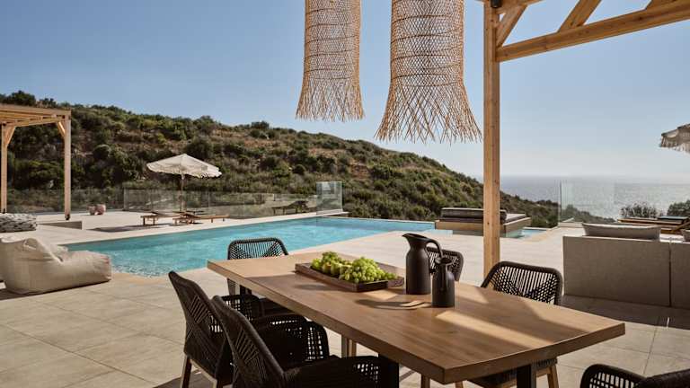 Verbringen Sie einen unvergesslichen Aufenthalt in der Elle Lux Villa, Essence of Endless Blue, By ThinkVilla in Agios Nikolaos. Diese Villa bietet einen saisonalen Außenpool, einen wunderschönen Garten, eine Terrasse und kostenfreies WLAN. Genießen Sie den Meerblick und nutzen Sie die kostenlosen Privatparkplätze. Die Villa ist klimatisiert und verfügt über 3 Schlafzimmer, ein geräumiges Wohnzimmer und eine voll ausgestattete Küche. Entspannen Sie in den 4 Badezimmern mit Dusche und Haartrockner. Handtücher und Bettwäsche werden gestellt. Nutzen Sie den Grill und erkunden Sie die Umgebung beim Wandern oder Radfahren. Der Strand Kremidi und der Strand Vathi Lagadi sind in der Nähe. Der internationale Flughafen Zakynthos liegt nur 26 km entfernt.
