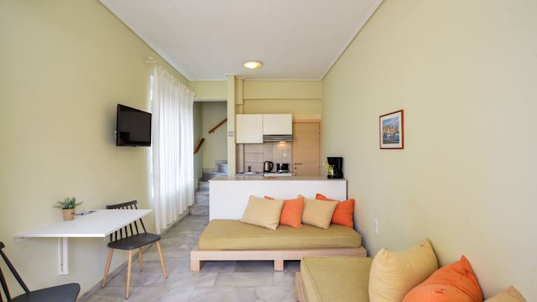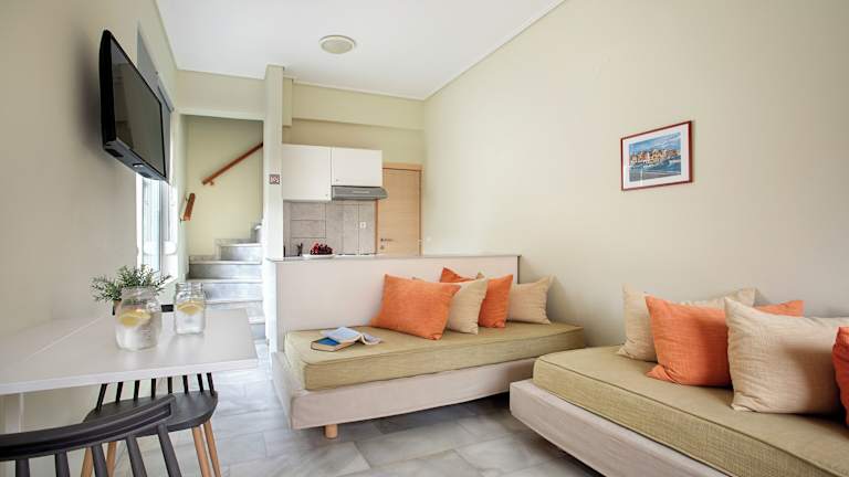 Verbringen Sie Ihren Traumurlaub im Elma's Dream Apartments & Villas, nur 100 Meter vom wunderschönen Chrisi Akti Beach entfernt. Hier erwartet Sie eine ruhige Atmosphäre, ein erfrischender Pool, ein separater Bereich für Kinder sowie ein Restaurant und eine Poolbar. Die komfortabel eingerichteten Studios und Apartments bieten Ihnen einen geräumigen Sitzbereich und eine voll ausgestattete Küchenzeile. Genießen Sie Ihren eigenen Balkon oder nutzen Sie die Gemeinschaftsterrasse. Die günstige Lage des Elma's Dream ermöglicht es Ihnen, Chania, den Flughafen und den Hafen schnell und bequem zu erreichen. Die Bushaltestelle befindet sich nur 50 Meter entfernt.