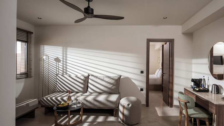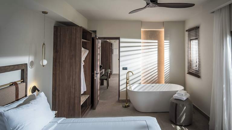 Die Zimmer sind modern und hell gestaltet und bieten größtenteils einen Balkon oder eine Terrasse mit Meerblick. Jedes Zimmer ist mit einem Doppelbett, einem Sofabett, Klimaanlage, Minibar, Safe, und einem Flachbildfernseher ausgestattet. Die Badezimmer verfügen über eine Whirlwanne, Kosmetikartikel, einen Kosmetikspiegel und Bademäntel. Zur weiteren Ausstattung gehören Teezubereiter, WLAN, Hausschuhe und Nichtraucherzimmer.