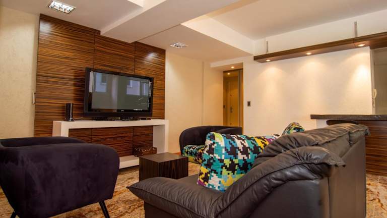 Die Ferienwohnung umfasst 3 separate Schlafzimmer, ein Wohnzimmer, zwei Badezimmer sowie eine voll ausgestattete Küche, die mit einem Kühlschrank und einem Geschirrspüler ausgestattet ist. Ein TV ist ebenfalls vorhanden.