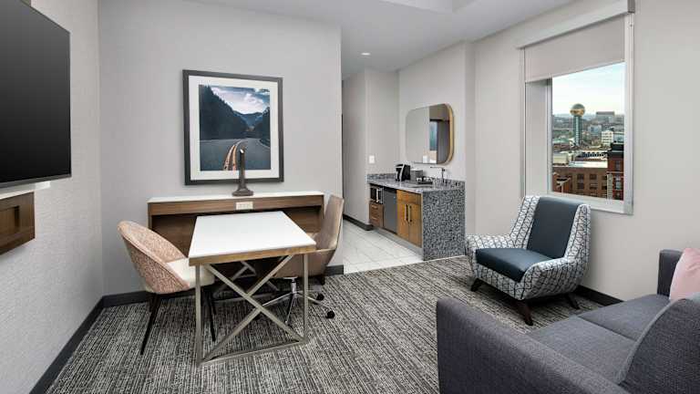 Die Zimmer im Embassy Suites By Hilton Knoxville Downtown sind komfortabel und bieten alle Annehmlichkeiten, die Sie für einen angenehmen Aufenthalt benötigen. Jedes Zimmer verfügt über einen Schreibtisch, einen Flachbild-TV und ein eigenes Bad. WLAN ist in allen Bereichen des Hotels verfügbar.
