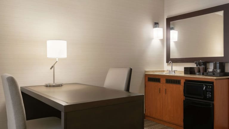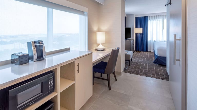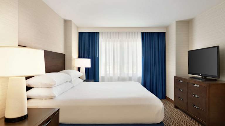 Die Unterkunft verfügt über 273 Suiten, die sich über 10 Etagen erstrecken. Jede Suite bietet ein separates Schlafzimmer, einen Wohnbereich, eine voll ausgestattete Küche und ein eigenes Badezimmer. Zur Ausstattung gehören auch zwei HDTVs, ein Schlafsofa, eine Mikrowelle und ein Kühlschrank.