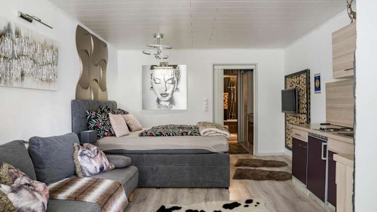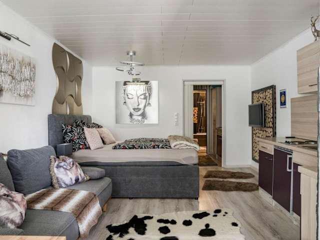 Die Ferienwohnung verfügt über ein Schlafzimmer, ein Wohnzimmer mit einem Satelliten Flachbild-TV, eine gut ausgestattete Küche sowie ein Badezimmer mit Dusche und Badewanne. Handtücher und Bettwäsche werden zur Verfügung gestellt.