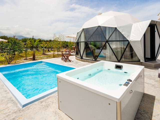 Emerald Oasis Glampotel, promises all the luxuries of a hotel in a unique layout and setting. For those wondering what glampotel means, it’s an experience that elevates traditional camping to an upgraded level of luxury, a unique combination of outdoor adventure and luxurious comfort. Glampotel redefines the camping experience with an emphasis on comfort and luxury and its ability to combine the uniqueness of being close to nature, enjoying the feeling of luxury accommodation. Glampotel appeal lies in its flexibility and the unique experiences that offers to a wide range of travelers, offering them the opportunity to reconnect with nature.