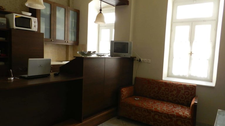 Das Hotel En Ermoupoli befindet sich in einer zentralen Lage, nur 100 m vom Miaouli-Platz entfernt. Von hier aus können Sie bequem die Sehenswürdigkeiten der Stadt Ermoupoli erkunden. Das Industriemuseum von Ermoupoli ist nur 1 km entfernt und bietet Ihnen einen interessanten Einblick in die industrielle Geschichte der Stadt. Der Hafen von Syros ist ebenfalls in kurzer Entfernung zu erreichen, was das Hotel zu einer idealen Wahl für Reisende macht, die mit der Fähre anreisen. In unmittelbarer Nähe finden Sie eine Vielzahl von Tavernen, Café-Bars und kleinen Supermärkten, in denen Sie lokale Spezialitäten probieren können. Besuchen Sie auch die beeindruckende St.-Nikolaus-Kirche, die nur 10 Gehminuten entfernt ist.