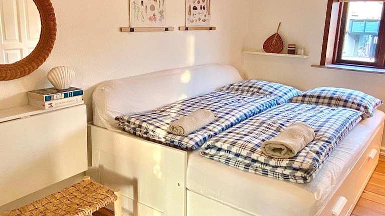 Die Ferienwohnung umfasst ein Schlafzimmer und ein Wohnzimmer. Zudem steht eine gut ausgestattete Küche zur Verfügung, die mit Kühlschrank und Ofen ausgestattet ist. Handtücher und Bettwäsche werden bereitgestellt und nach den Richtlinien der örtlichen Behörden gewaschen. Es bietet Gartenmöbel sowie eine Terrasse und ist ausschließlich als Nichtraucherunterkunft konzipiert.