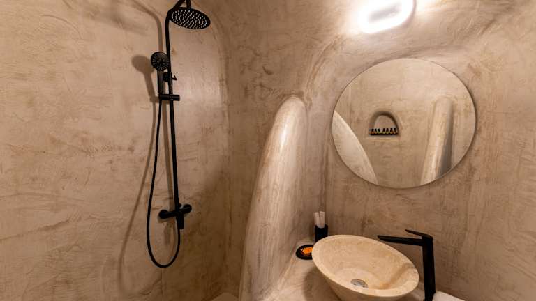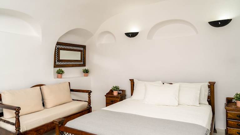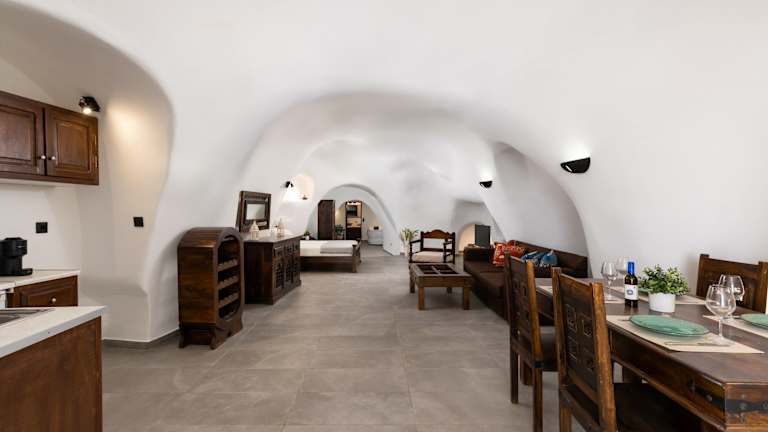 Die Suiten im Enalion sind traditionell eingerichtet und verfügen über beeindruckende Gewölbedecken. Jede Suite ist im Höhlenstil gestaltet und bietet einen gemeinschaftlichen Balkon mit Blick auf die Umgebung. Die Suiten sind mit holzgeschnitzten Möbeln, einer Küchenzeile mit Esstisch und einem Wohnbereich mit Flachbild-Sat-TV ausgestattet. Im eigenen Bad finden Sie kostenfreie Pflegeprodukte, Bademäntel und Hausschuhe für Ihren Komfort.