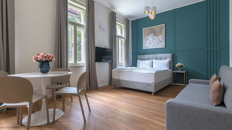 Die Encore Boutique Residence by Dwellfort bietet ein modernes Ambiente mit kostenlosem WLAN und einem komfortabel eingerichteten Sitzbereich. Die Unterkunft ist optimal für Reisende, die eine zentrale Lage in Prag suchen.