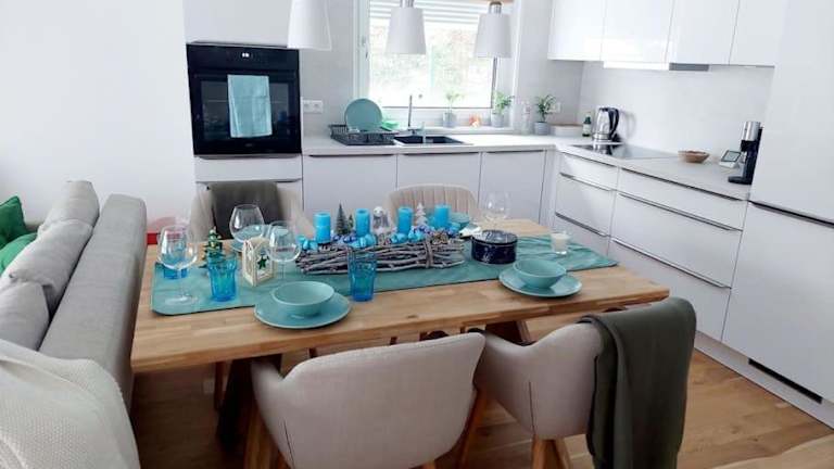 Die Ferienwohnung umfasst ein Schlafzimmer, einen Wohnbereich und ein Badezimmer mit Dusche. Zur Ausstattung gehören außerdem ein Flachbild-TV, eine gut ausgestattete Küche mit Kühlschrank und Geschirrspüler sowie eine Terrasse mit Bergblick. Handtücher und Bettwäsche werden bereitgestellt.