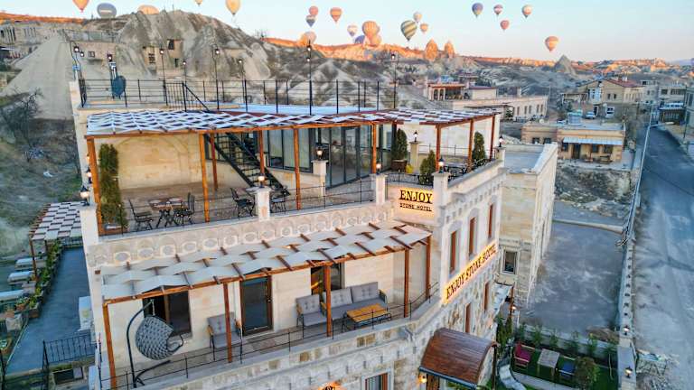 Das Enjoy Stone Hotel liegt in Göreme, weniger als 3,6 km von Uçhisar Kalesi und 6,7 km vom Zelve Open Air Museum entfernt. Die Umgebung bietet zahlreiche historische und touristische Attraktionen wie das Nikolos Monastery und das Ürgüp-Museum. Der nächste Flughafen ist der Flughafen Nevşehir-Kapadokya, der sich 38 km entfernt befindet.