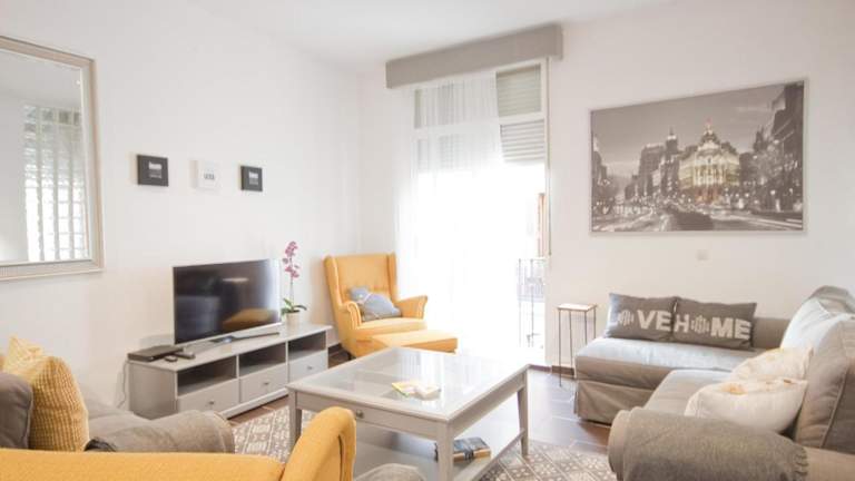 Das Enorme y acogedor piso en la puerta del sol bietet ein geräumiges Apartment mit 3 Schlafzimmern, einem Wohnzimmer, einer voll ausgestatteten Küche und einem Badezimmer. Die Zimmer sind komfortabel und stilvoll eingerichtet und bieten Platz für bis zu 6 Personen. Zur Ausstattung gehören ein Flachbild-TV, ein DVD-Player und kostenfreies WLAN in allen Bereichen. Die Küche verfügt über einen Kühlschrank und eine Kaffeemaschine, so dass Sie sich wie zu Hause fühlen können.