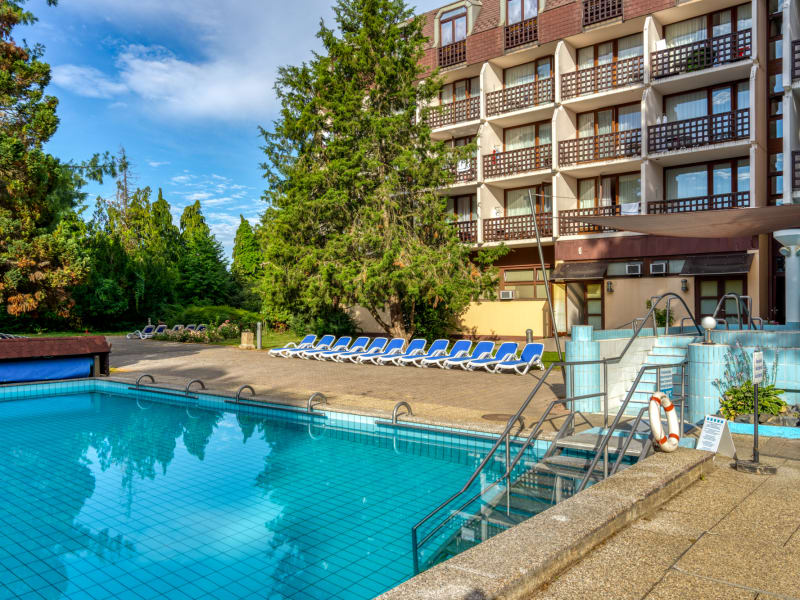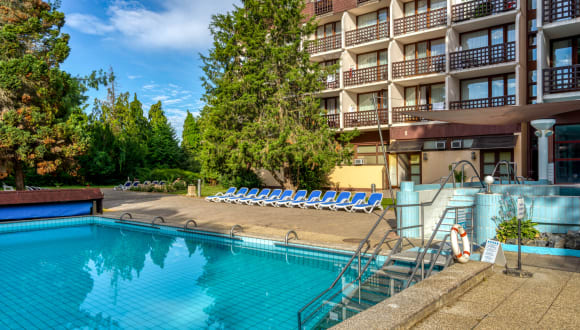 # Entspannendes Thermalbad (ca. 104 m2, 30-34° C) mit Jacuzzi, Massage-Brause, Sofa und Unterwasserdüsen # Thermalhallenbad (12.5 x 8 m, 36° C) und Außen-Thermalbad (13.5 x 8 m, 28-32° C) * Tägliche Gruppengymnastik-Übungen * Jogging und Nordic Walking im wundervollen Hofpark * Petanque, Tischtennis, Basketball-Brett, Badminton-Feld, Kegeln, Schach im Freien, Fahrradvermietung * Nahe gelegene Reitschule, Kutschenfahrten, Jagen, Angeln und Golf (25 km entfernt), Radfahren und Tennis