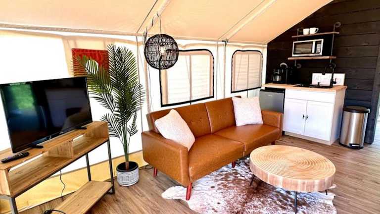 Die Zelte sind klimatisiert und verfügen über eine voll ausgestattete Küche, einen Fernseher sowie ein eigenes Badezimmer mit Badewanne, kostenlosen Pflegeprodukten und einem Haartrockner. Diese Ausstattung garantiert einen komfortablen Aufenthalt.