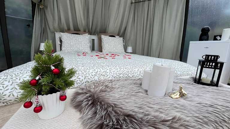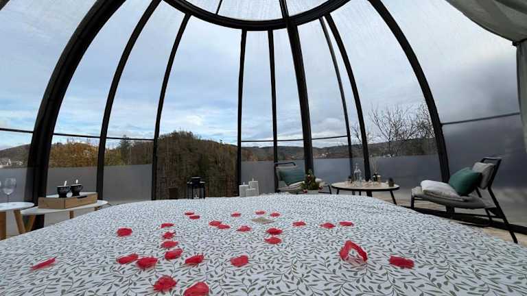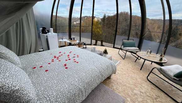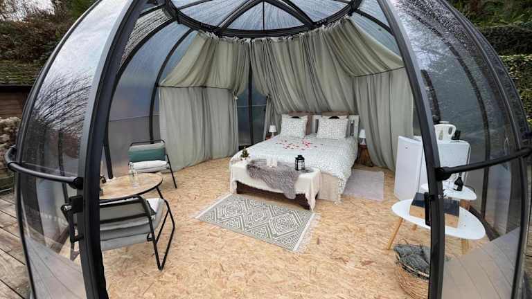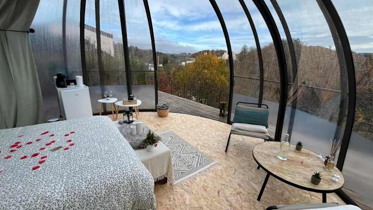 Erleben Sie einen einzigartigen Aufenthalt im Bulle Time Flies - logement insolite in Bouillon. Die Unterkunft bietet luxuriöse Zelte mit Terrasse und Kaffeemaschine, von denen aus Sie einen atemberaubenden Stadtblick genießen können. Das Flussufer, die Burg Château fort de Bouillon und der Golfplatz Ardennes sind nur wenige Kilometer entfernt. Das Euro Space Center ist ebenfalls gut erreichbar. Lassen Sie sich von der einzigartigen Atmosphäre und dem Komfort dieser Unterkunft begeistern.