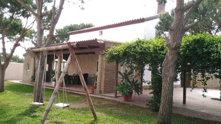 Entre Pinos befindet sich in El Palmar, nur 100 Meter vom Playa El Palmar entfernt. Die Umgebung bietet eine Vielzahl an Bars, Restaurants und Supermärkten, die sich innerhalb von 100 Metern bis 1 Kilometer Entfernung befinden. Sehenswürdigkeiten wie das Naturschutzgebiet La Breña y Marismas del Barbate und Los Caños de Meca sind 10 Kilometer entfernt. Die Anfahrt vom Flughafen Jerez dauert etwa 50 Minuten, während der Flughafen Malaga 220 Kilometer entfernt ist. Es wird empfohlen, mit einem eigenen Fahrzeug anzureisen, da die Unterkunft nicht direkt mit öffentlichen Verkehrsmitteln erreichbar ist.