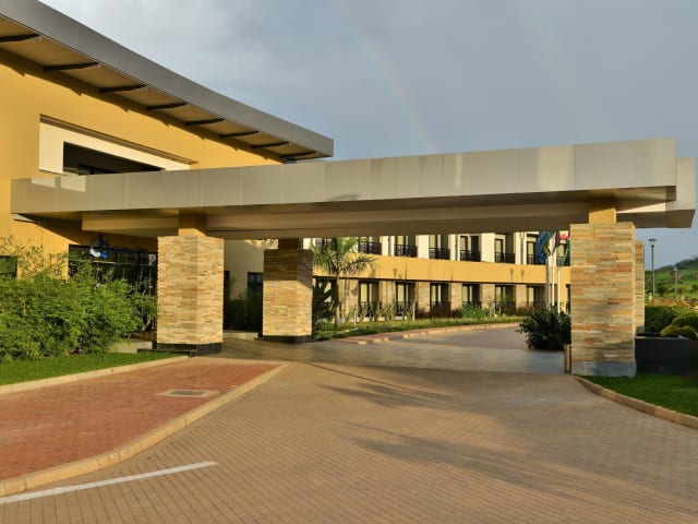 Das EPIC Hotel & Suites in Nyagatare bietet seinen Gästen einen angenehmen Aufenthalt mit kostenfreiem WLAN und einem freundlichen 24-Stunden-Rezeptionsteam. Der Außenpool lädt zum Entspannen ein und das Hotel verfügt über ein Restaurant und eine Gemeinschaftslounge. Die Zimmer sind komfortabel ausgestattet und bieten einen schönen Blick auf den Pool sowie einen Balkon. Genießen Sie ein reichhaltiges Frühstück und nutzen Sie den Wellnessbereich mit Sauna und Fitnesscenter. Das Hotel bietet auch Tennisplätze, ein Businesscenter und einen Kinderspielplatz.