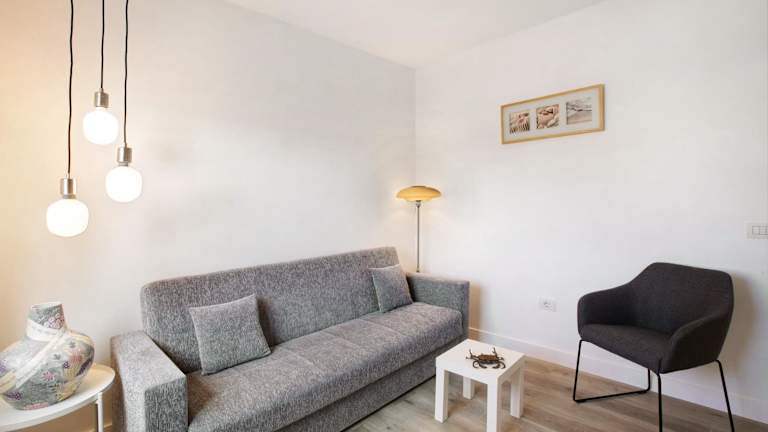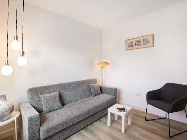 Die Ferienwohnung umfasst 1 Schlafzimmer, ein Wohnzimmer und eine voll ausgestattete Küche mit Kühlschrank und Kaffeemaschine. Zur Ausstattung gehört zudem ein Badezimmer mit Dusche und kostenlosen Pflegeprodukten. Handtücher und Bettwäsche werden bereitgestellt.
