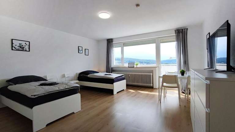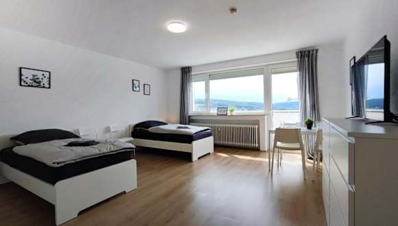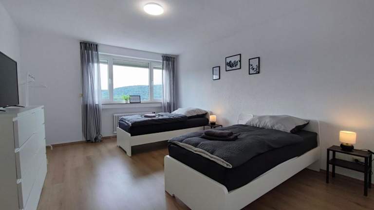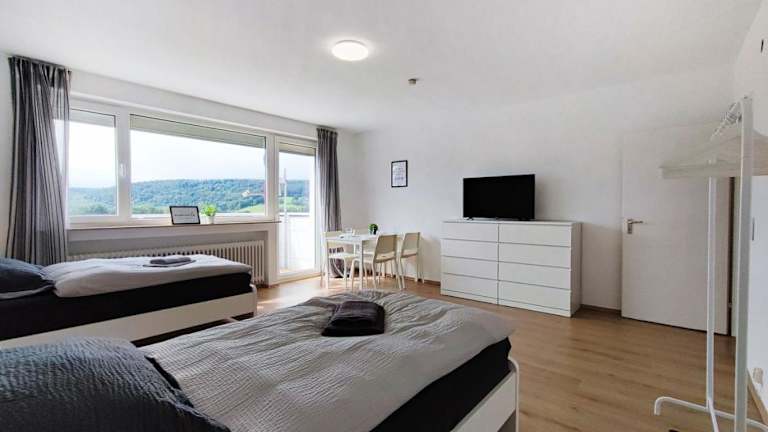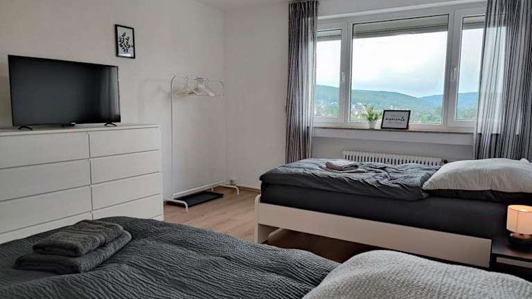 Die Ferienwohnung ERB01 - 2-Zimmer-Apartment mit Balkon in Bad König bietet Übernachtungsmöglichkeiten in einem modernen Ambiente. Die Unterkunft verfügt über zwei Schlafzimmer, ein Badezimmer mit Badewanne und eine gut ausgestattete Küche. Zu den Annehmlichkeiten gehören ebenfalls ein Flachbild-TV sowie kostenloses WLAN. Das Apartment ist für Erwachsene ausgelegt und erlaubt keine Feiern oder Haustiere.