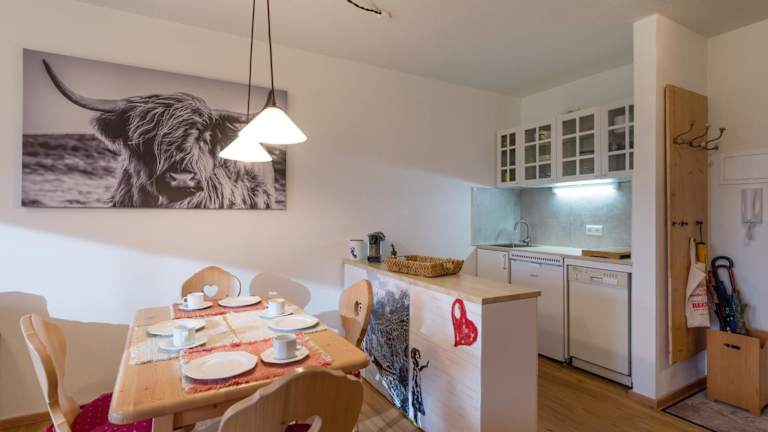 Die Ferienwohnung umfasst ein Schlafzimmer, ein Wohnzimmer und ein Badezimmer mit Dusche. Die Küchenzeile ist mit einem Kühlschrank und einer Kaffeemaschine ausgestattet. Handtücher und Bettwäsche werden bereitgestellt. Allergikerfreundliche Zimmer sind verfügbar.