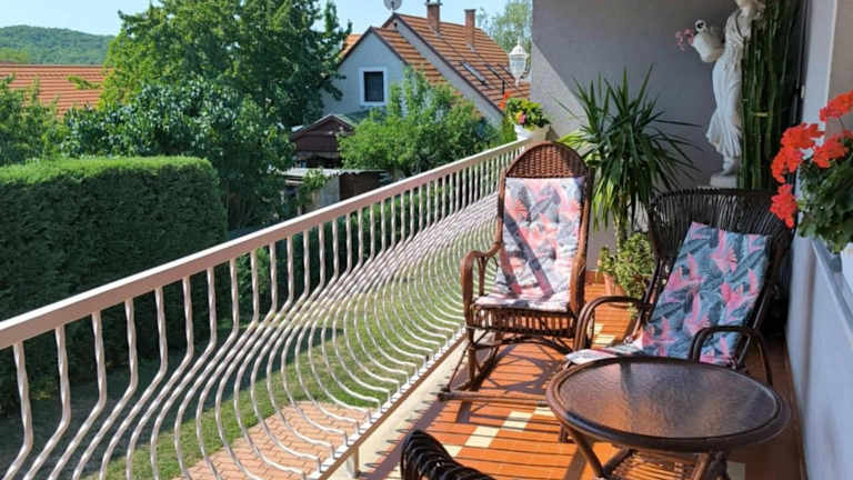 Erika Apartman bietet eine klimatisierte Unterkunft mit Gartenblick und einer Veranda oder einem Patio. Die Ferienwohnung umfasst zwei Schlafzimmer und ein Badezimmer. Zu den Annehmlichkeiten gehören Bettwäsche, Handtücher, ein Flachbild-TV mit Satellitenkanälen und ein Essbereich. Des Weiteren ist eine voll ausgestattete Küche sowie eine Terrasse mit Blick auf die Berge vorhanden. Es gibt kostenloses WLAN und einen Privatparkplatz.
