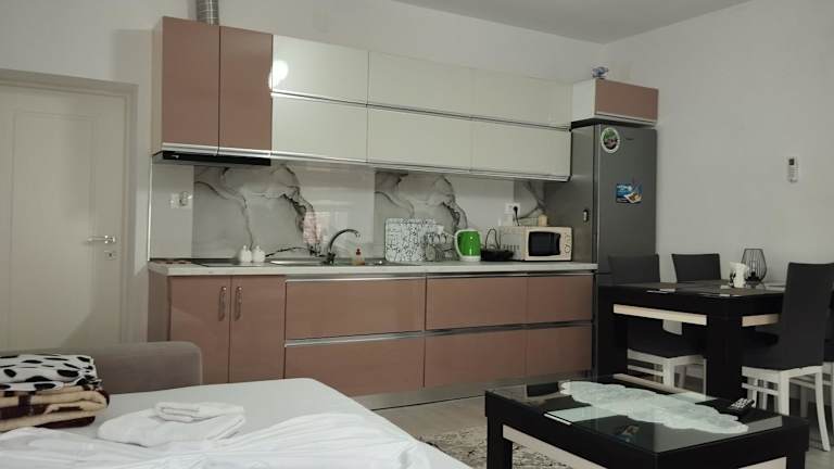 Das ERTEO Guest House in Pogradec ist ein charmantes Ferienhaus, das seinen Gästen einen malerischen Gartenblick, kostenfreies WLAN und Parkplätze bietet. Mit seiner günstigen Lage in der Nähe von Sehenswürdigkeiten wie der Höhlenkirche Erzengel Michael und dem Hafen von Ohrid ist es der ideale Ausgangspunkt, um die Umgebung zu erkunden. Das Ferienhaus selbst verfügt über eine schöne Terrasse, ein komfortables Schlafzimmer, ein gemütliches Wohnzimmer und eine gut ausgestattete Küche. Ein Flachbild-TV sorgt für Unterhaltung. Die Nähe zum Ohridsee und zur Kirche der Heiligen Clement und Panteleimon machen dieses Gästehaus zu einem perfekten Ort für einen erholsamen Urlaub.