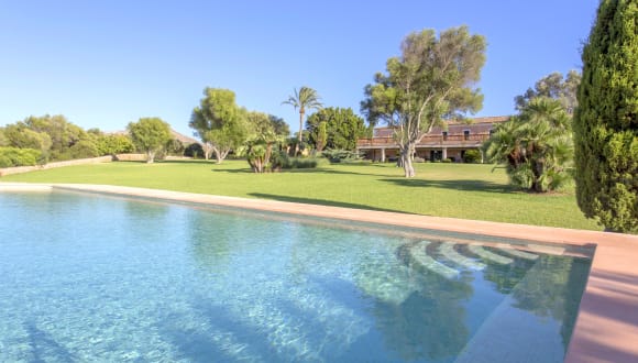 Beeindruckendes Herrenhaus auf dem Land die die Bucht von Alcudia und das mallorquinische Gebirge beherrscht. Groβartigkeit und Eleganz des traditionellen Baustils verbinden sich mit zeitgemäβem Komfort, wie Heizung, Klimaanlage und W-Lan. Mit Sorgfalt und erlesenem Geschmack eingerichtet. Das Herrenhaus verfügt über eine Hauptwohnung und zwei angrenzende Appartments. - Die Hauptwohnung unterteilt sich in Erd- und Obergeschoss. · Im Erdgeschoss befinden sich die Einrichtungen für den Alltag zu Hause: Empfangshalle und –Dielen, Gäste-WC, drei Wohnzimmer, zwei Esszimmer, Küche, Speiserkammer, Waschraum… · Mehr Privatsphäre finden Sie im Obergeschoss: vier groβzügig gestaltete Schlafzimmer mit und ohne Terrasse und Badezimmer en Suite (zwei Doppelschlafzimmer und zwei Vierbettzimmer), zwei groβe Wohnzimmer und eine groβräumige Terrasse, von der aus Sie den Blick auf den herrlichen Garten, das Meer und die Berge genieβen können. - Das am Herrenhaus angebaute Appartment hat Wohnzimmer, zwei Doppelschlafzimmer mit jeweils einem Badezimmer en Suite. - Das zweite Appartment ist unabhängig und verfügt über ein Doppelschlafzimmer mit Badezimmer en Suite, ein kleines Wohnzimmer, Küche und Esszimmer. Die Gebäude befinden sich inmitten einer weitläufigen Gartenanlage mit Pool und typisch mediterraner Planzenvielfalt. Auf der Finca stehen den Gästen auch überdachte Parkmöglichkeiten (9 Plätze), eine Kapelle, Ställe mit Pferden und Ponys und sogar eine Trabrennbahn zur Verfügung.