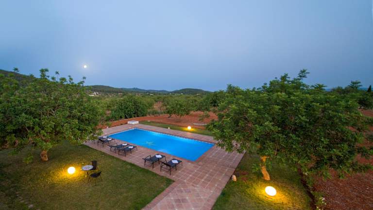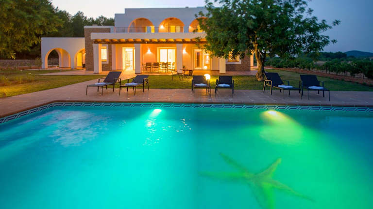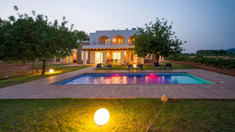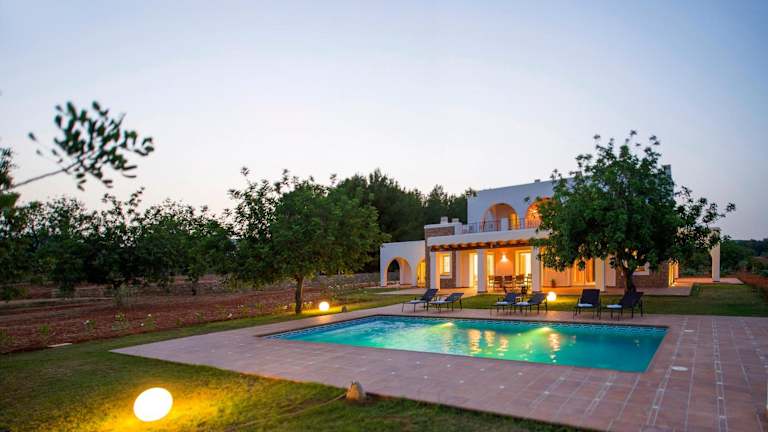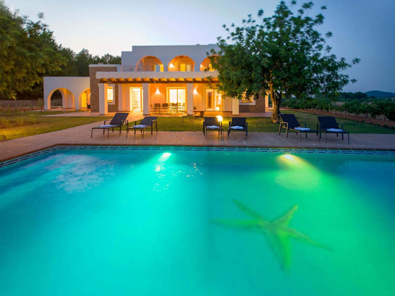 Das Es Casals Nou in Santa Gertrudis de Fruitera bietet Ihnen eine komfortable Villa mit eigenem Pool, kostenfreiem WLAN und atemberaubendem Bergblick. Genießen Sie die Ruhe und Privatsphäre dieser Unterkunft, während Sie den saisonalen Außenpool, den Garten und die Terrasse nutzen. Die Villa verfügt über 4 Schlafzimmer, eine voll ausgestattete Küche und einen Flachbild-Sat-TV. Kostenlose Privatparkplätze stehen zur Verfügung und Sie können auch ein Auto mieten, um die Umgebung zu erkunden. Der nächste Flughafen ist der Flughafen Ibiza, der etwa 20 km entfernt liegt.