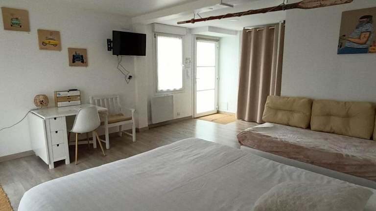 Das Escales dans les dunes befindet sich in Créances und bietet eine schöne Lage in der Nähe des Strandes. Die Umgebung lädt zu Spaziergängen und Erkundungen ein. Granville, eine malerische Stadt, ist nur 54 km entfernt und einen Besuch wert. Wenn Sie mit dem Flugzeug anreisen, ist der nächstgelegene Flughafen Dinard-Pleurtuit-Saint-Malo, der etwa 150 km entfernt liegt.