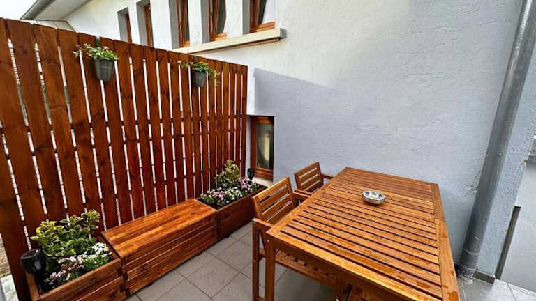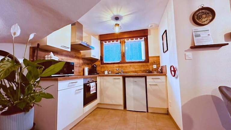 Die Ferienwohnung verfügt über ein Schlafzimmer, ein Wohnzimmer und eine gut ausgestattete Küche, die mit einem Ofen und einer Mikrowelle ausgestattet ist. Die Unterkunft hat auch eine Terrasse, Gartenmöbel sowie Nichtraucherbereiche. Bettwäsche, Handtücher und Wäsche werden nach spezifischen Richtlinien gereinigt.
