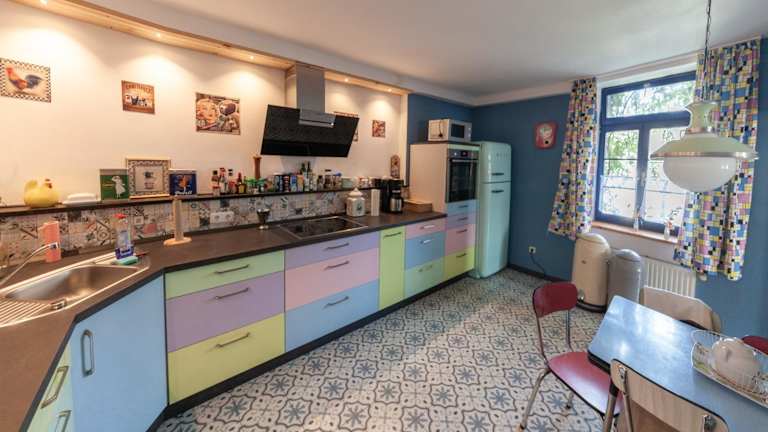 Die Wohneinheiten verfügen über eine voll ausgestattete Küche, die unter anderem einen Kühlschrank, einen Geschirrspüler, eine Mikrowelle, eine Herdplatte sowie eine Kaffeemaschine und einen Wasserkocher umfasst. Ein Essbereich ist ebenfalls vorhanden.