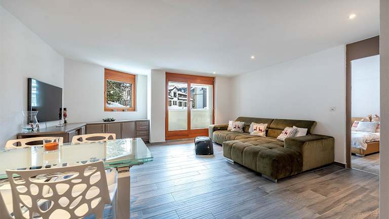 Die Ferienwohnung umfasst ein Schlafzimmer, ein Wohnzimmer, einen Satelliten Flachbild-TV sowie eine gut ausgestattete Küche. Es gibt zwei Badezimmer mit Bidet und Dusche und einen Balkon mit Bergblick.