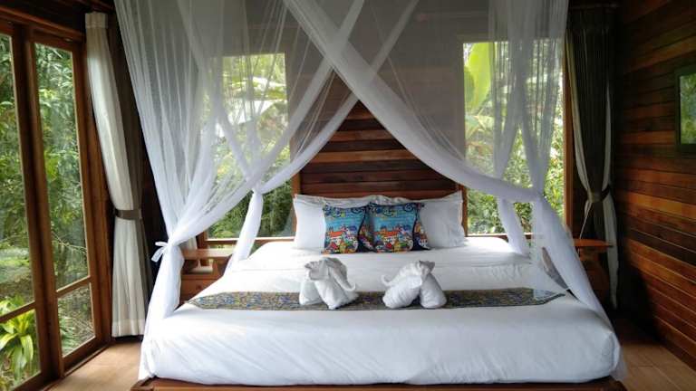Die klimatisierten Bungalows im Esmeralda View Resort sind gemütlich eingerichtet und verfügen über Annehmlichkeiten wie Kabel-TV und einen eigenen Balkon mit Sitzbereich. Jeder Bungalow hat auch ein eigenes Badezimmer mit Dusche. Genießen Sie den Komfort und die Privatsphäre dieser Unterkunft während Ihres Aufenthalts.